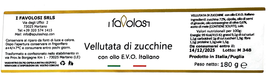 La Vellutata di Zucchine della linea “I Favolosi” è un tributo alla semplicità e all’eleganza dei sapori che la Puglia sa offrire.