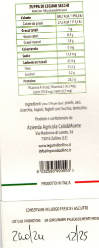 Oltre al suo sapore ricco, la zuppa mista di legumi è un alimento sano e nutriente. I legumi sono noti per le loro proprietà benefiche, come il basso contenuto di grassi e l’alto valore proteico. La zuppa è completamente priva di conservanti e additivi, per garantire un prodotto naturale e di qualità.